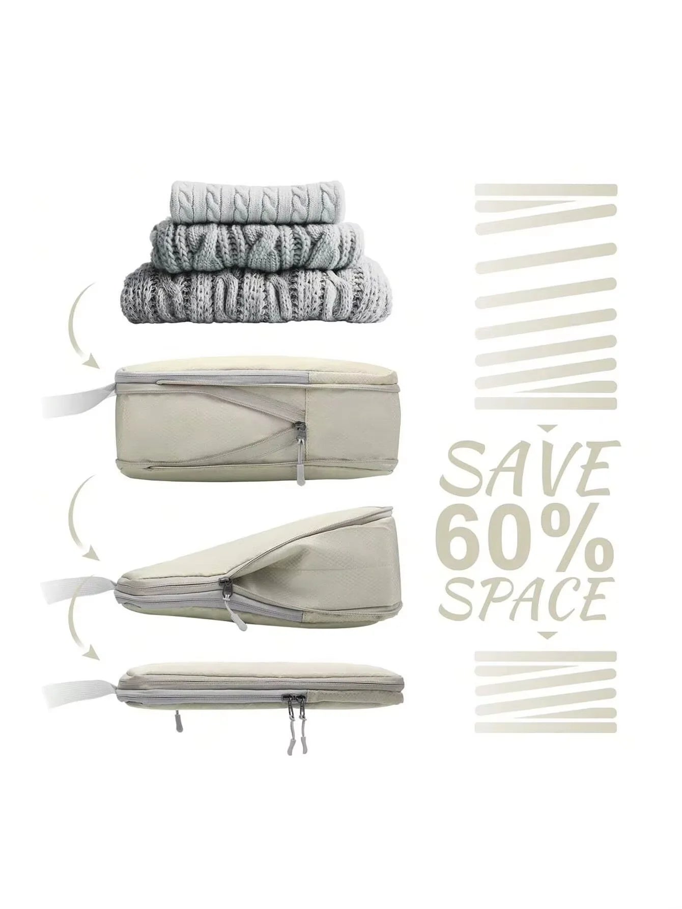 Keep your suitcase organized and maximize luggage space with this compression packing cube set.